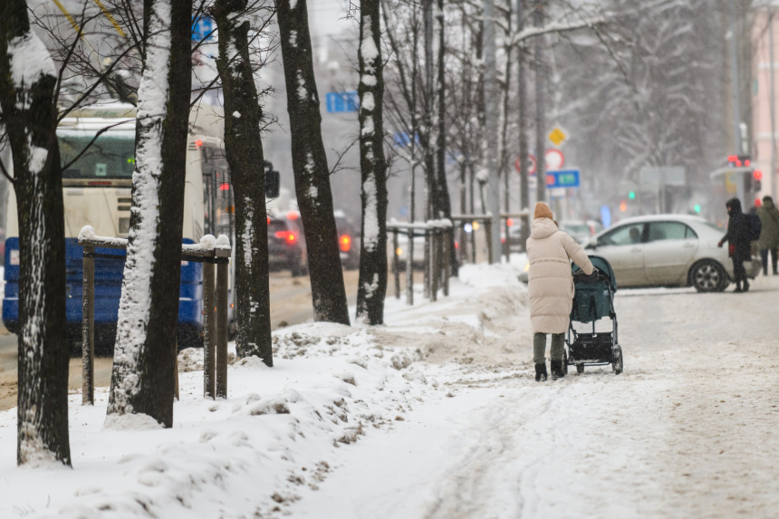 Valsts teritorijas lielākajā daļā līs un snigs. Latvijas Vides, ģeoloģijas un meteoroloģijas centrs daļā Vidzemes un Zemgales izsludinājis dzeltenās pakāpes brīdinājumu par snigšanu - vietām veidosies 3-5 centimetrus bieza sniega sega.