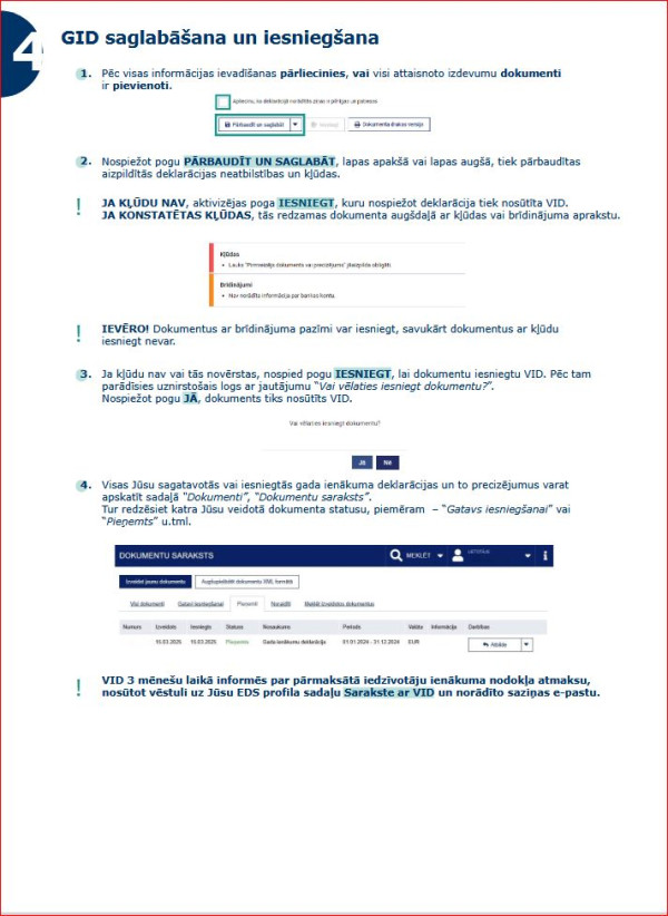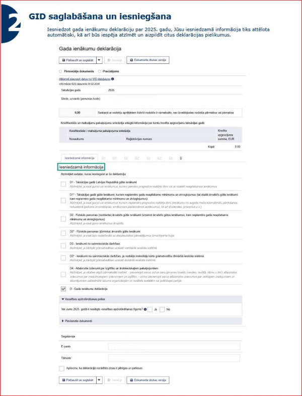 Piemēram, deklarāciju par 2025. gadu var iesniegt no 2026. gada 1. marta līdz 2029. gada 23. jūnijam. Savukārt deklarāciju par 2022. gadu var iesniegt līdz 2026. gada 23. jūnijam.