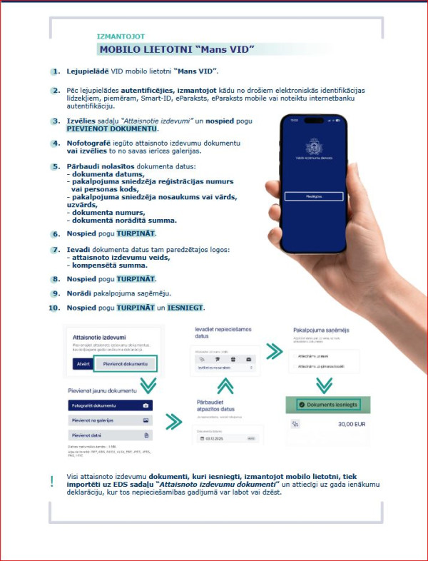 Lai saņemtu nodokļa atmaksu, gada ienākumu deklarācijai ir jāpievieno maksājumu dokumenti (čeki, kvītis, maksājumu uzdevumi).