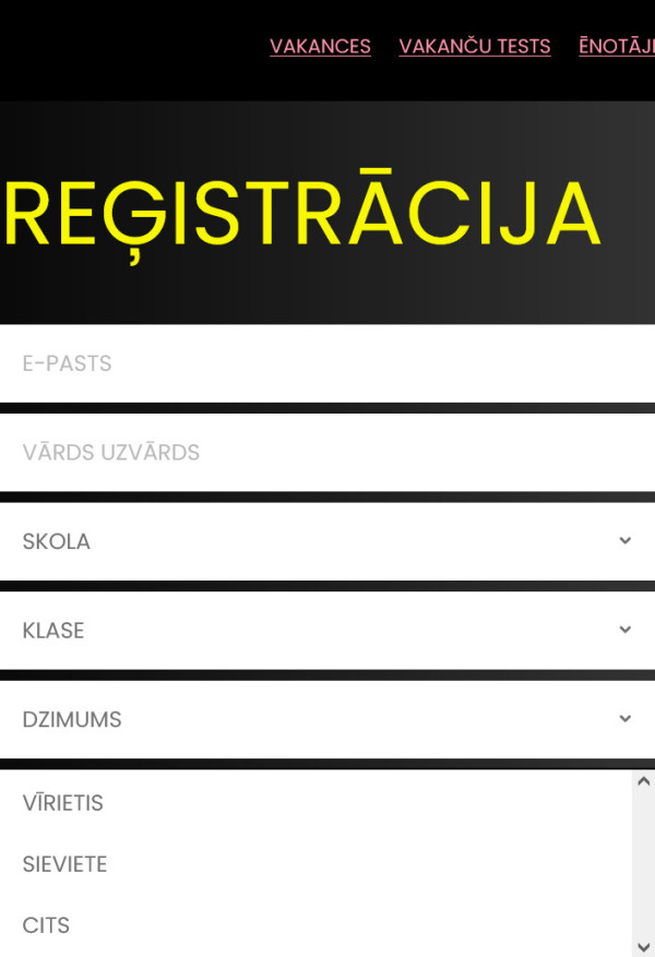 Lai piedalītos izglītības organizācijas “Junior Achievement Latvia” (JA Latvia) ik gadu rīkotajā “Ēnu dienā”, skolēniem jāreģistrējas. Kā obligāta prasība ir norādīt dzimumu - izvēloties strap "vīrietis", "sieviete", "cits".