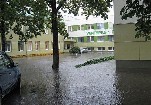 Ventspils 1.pamatskolā aģentūrai BNS pastāstīja, ka pie skolas ūdens līmenis ir vairāku desmitu centimetru augsts. Applūduši skolas pagrabstāvi, kur izvietota garderobe un citas telpas. Pie skolas ieejas izveidojušās dziļas peļķes – ūdens sniedzoties automašīnu riteņiem līdz pusei.