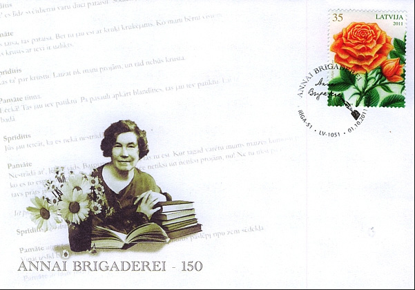Par godu populārās latviešu literatūras klasiķes Annas Brigaderes 150.gadadienai "Latvijas Pasts" (LP) laidis klajā speciālu aploksni, kur attēlota rakstniece.