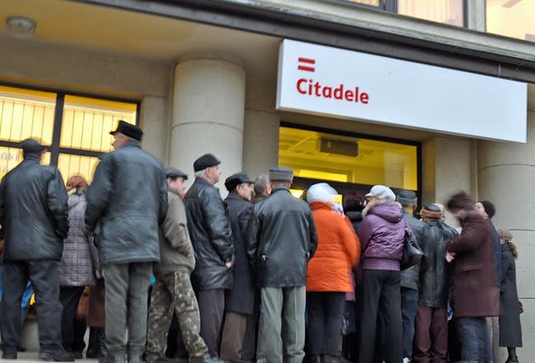 Pie galvenās bankas "Citadele" ēkas Republikas laukumā Rīgā otrdienas rītā pirms pulksten 8 jau izveidojusies apmēram 50 cilvēku gara rinda, novēroja aģentūra BNS.