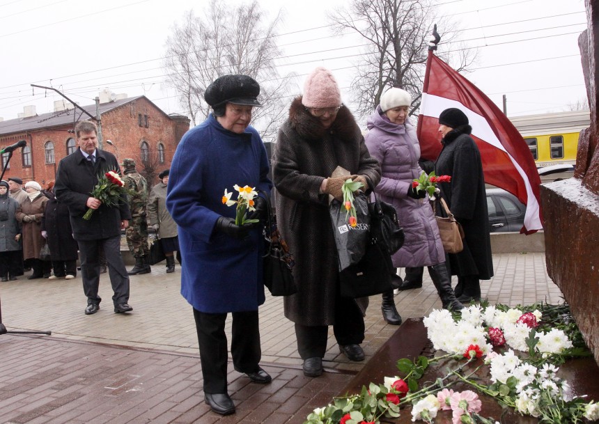 Visā Latvijā svētdien pieminēja 1949. gada deportāciju un komunistiskā genocīda upurus. (Attēlā piemiņas brīdis Šķirotavas dzelzsceļa stacijā Rīgā). Pirms 63 gadiem no Latvijas uz Sibīriju tika izsūtīti vairāk nekā 41 811 cilvēki. «Tā ir viena no melnākajām dienām visām Baltijas valstīm un tautām, 90 000 cilvēku bez tiesas tika nosaukti par noziedzniekiem, atņemot mantu un izsūtot uz mūžu no savas zemes,» uzrunā sacīja Valsts prezidents.