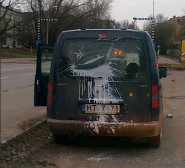 Portāla Delfi.lv rubrikai "Aculiecinieks" kāds rīdzinieks atsūtījis bildes, kurās redzams, ka automašīnai ar fotoradaru bagāžas nodalījumā nezināms uzbrucējs iemetis ar kefīra paku.