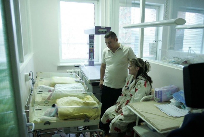 "Protams, par sievu uztraucos! Mēs ar viņu esam ģimene, mēs viens otram jau bijām, pirms radās bērni. Tāpēc man viņa bija vissvarīgākā, uztraucos, vai dzemdībās viss būs labi," 3. novembra izjūtas atceras jaunais tētis. Sergejs sirsnīgi aicina pie palātas galdiņa un rāda papīra lapu, uz kuras akurāti uzrakstījis pateicību Dzemdību nama operāciju nodaļas un bērnu intensīvās terapijas 2. bērnu nodaļas personālam, dakterēm Nikolajevai un Eihenbergai, kā arī Valērijai Godunovai. Dina pēkšņi iejautājas, kā viņa izskatās, jo šo dienu laikā par spoguli piemirsusi. Viņa smaida vien un nenoliedz – esot laimīga, ka tāds vīrietis blakus. "Tēvs viņš būs ļoti labs, grib pats iemācīties barot bērniņus, nomainīt pamperus, parūpēties par viņiem," atzinīgi vērtē Dina.