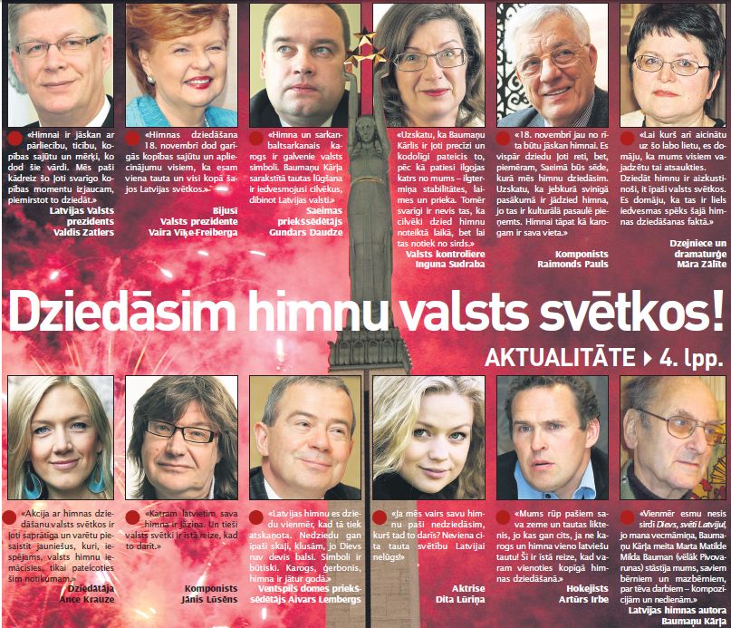 "Katram latvietim sava himna ir jāzina. Un tieši valsts svētki ir īstā reize, kad to darīt."