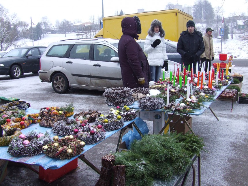 Tirgotāji apgalvo, ka šādas cenas bijušas arī pērn. Arī daudziem talseniekiem patīk pašiem izgatavot Adventa vainagus. Vanagu pamatnītes no salmiem šeit maksā, sākot no 0,50 latiem.