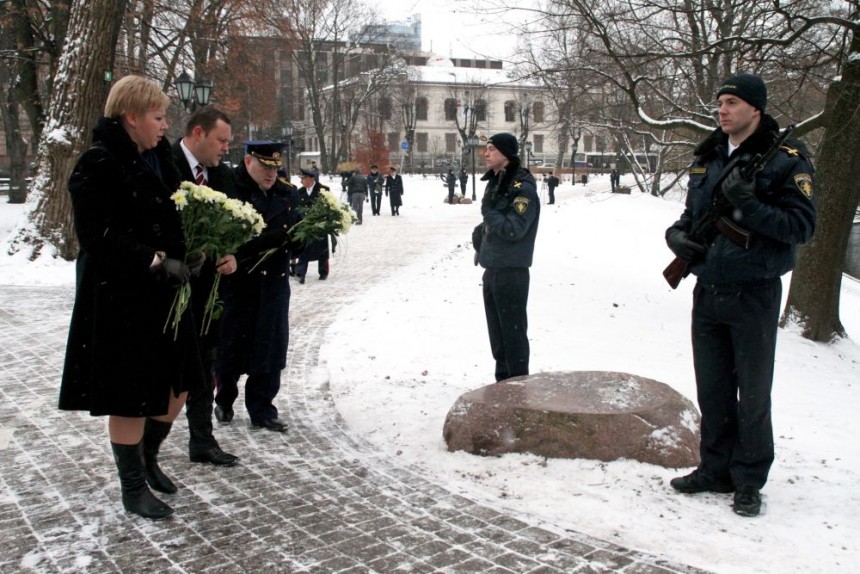 Jau plkst.9 VP priekšnieks ģenerālis Ints Ķuzis un policijas reģionu pārvalžu priekšnieki, kā arī citas augstas dienesta amatpersonas pie Laimas pulksteņa tikās ar iekšlietu ministru Kozlovski un ministrijas valsts sekretāri Ilzi Pētersoni-Godmani, lai visi kopīgi noliktu ziedus pie Brīvības pieminekļa un Barikāžu laikā kritušo piemiņas vietās Bastejkalnā.