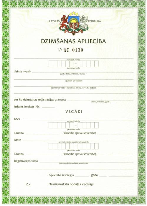 Tieslietu ministrija (TM) šogad pārsteidza jaunos vecākus, nepiešķirot naudu dizainētu dzimšanas apliecību drukāšanai. Ar pamatojumu, ka dokumentu apritē jāpāriet uz elektronisko vidi, gan dzimšanas, gan laulības apliecības nu ir datu izdruka no reģistra, kas apstiprināta ar amatpersonas parakstu un manuālu apzīmogojumu. Un arī lētāk šāda datorizdruka sanākot, jo dizainētu apliecību izgatavošana varētu izmaksāt 5000 latu. Savukārt iedzīvotājiem tika veltīts TM pārstāvja vērtējums – mūsējie esot pārāk lieli estēti, ja reiz gribot īpaši noformētu dokumentu.