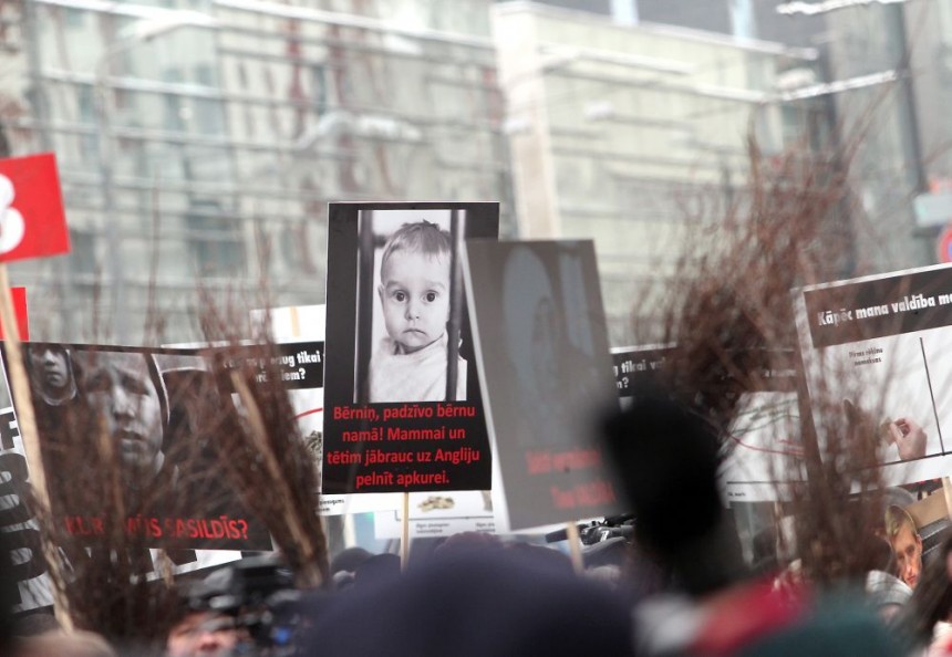 «Mana pensija ir 200 latu, bet 232 lati jāatdod par dzīvokli,» rēķina kāda protestēt atnākusi kundze. «Šodien vēl mazbērniņam paliek četri gadi, un bērniem arī jāpalīdz! Un tad brīnās, ka cilvēkiem krājas nenomaksāti parādi.» Cita protestētāja bēdājas, ka jāmaksā gan pārvaldniekam, gan par apkuri: «Man neiznāk ne zālēm, ne ēšanai. Pat ledusskapis ir izslēgts! Cik es varu bērniem prasīt? Viņiem arī nav.» Protesta dalībnieks Valdis mītiņa noslēgumā nes arodbiedrības sagādāto plakātu: «Piedalos, jo ir grūti. Alga maza, bet maksājumi par dzīvokli ir pārāk lieli. Kāds būs valdības sēdes noslēgums, nezinu, bet, ja nekas nemainīsies, turpināsim protestēt.»