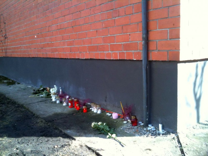 Pieminot vakar mūžībā aizgājušo dzejnieku Imantu Ziedoni, šodien cilvēki noliek svecītes pie mājas Rīgā, Zaļās un Dzirnavu ielas stūrī.