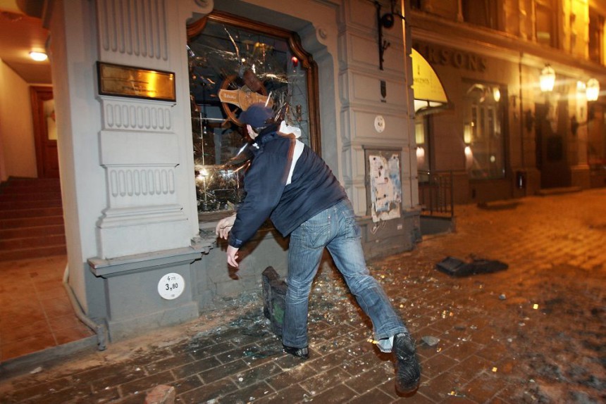 Pēc protesta akcijas Vecrīgā sākās grautiņi - tika izsisti logi vairākām ēkām, tostarp stipri cieta Saeimas nams, tika aplaupīts veikals, kurā tirgoja AS "Latvijas balzams" produkciju, kā arī cieta muzikālais restorāns "Fīlings". Kā novēroja aģentūra LETA, grautiņos piedalījās vairāki simti jauniešu, no kuriem daudzi bija alkohola reibumā. Šie cilvēki vairākas stundas demolēja Vecrīgu.