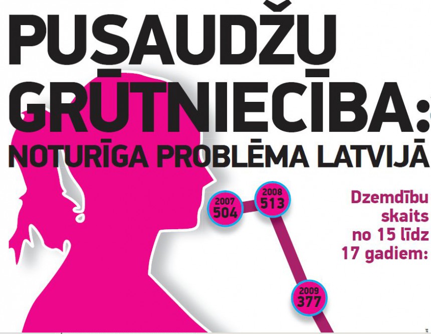 Pagājušā gada laikā vecumā līdz 14 gadiem dzemdēja trīs meitenes, tāpat kā gadu pirms tam. Savukārt 2011. gadā vecumā no 15 līdz 17 gadiem mazulis piedzima 270 jaunkundzēm, bet pērn šādu dzemdību bija mazāk – 232 pusaudzes sagaidīja pirmdzimto. Vecuma grupā līdz 14 gadiem 2011. gadā abortu izdarīja septiņas meitenes, bet no 15 līdz 17 gadiem – 171 jauniete. Pētījuma dati par 2009./2010. mācību gadu rāda, ka seksuālas attiecības bijušas gandrīz katram piektajam (22,4%) skolēnam 15 gadu vecumā. No 15 gadus veciem pusaudžiem, kuriem bijis dzimumakts, 51,7% tas pirmo reizi noticis vecumā līdz 14 gadiem. Nepilngadīgo nekompetenci atklāj arī smēķējošo dzemdētāju dati, jo 2011. gadā visvairāk smēķējošo bija tieši 15 līdz 19 gadus jauno māmiņu vidū – vairāk nekā piektdaļa (21,7%), informēja Slimību profilakses un kontroles centra Komunikācijas nodaļas vadītāja Laura Ševčenko.