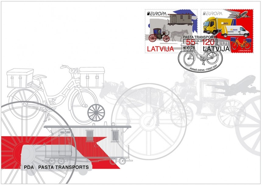 Piektdien, 19.aprīlī Latvijas pasts laidīs klajā divas jaunas pastmarkas, kas veltītas pasta transporta tēmai, abas iznāk Eiropas valstu vienotajā pastmarku sērijā.