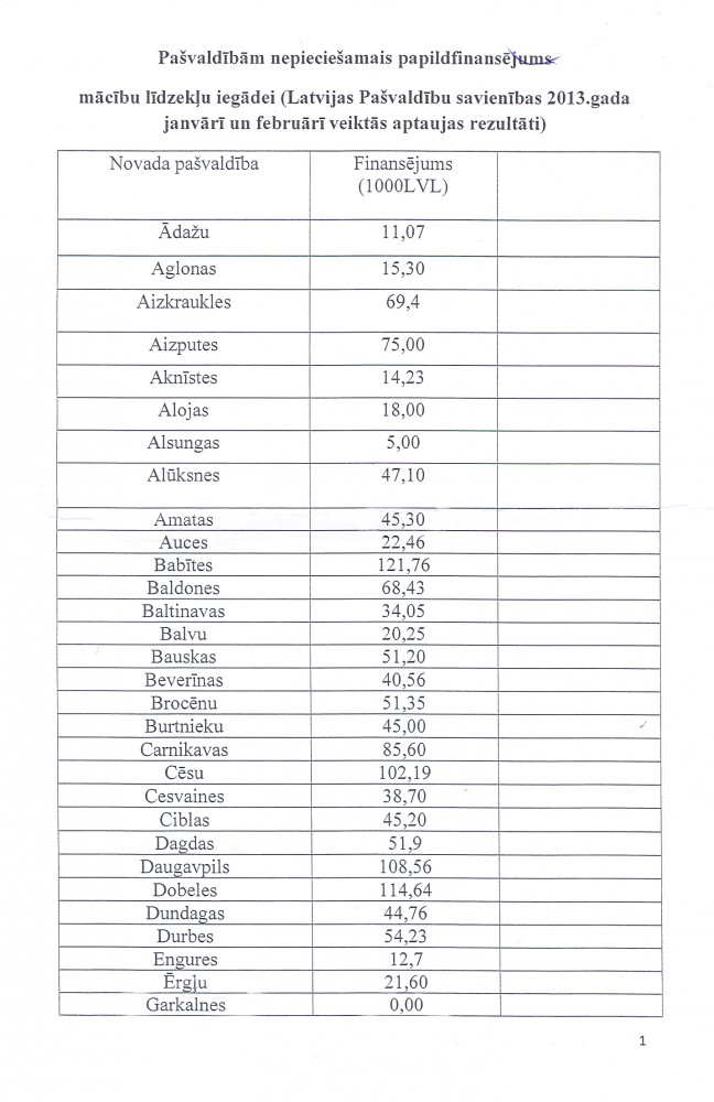 Tikai Garkalnes novads, kas ir viens no visturīgākajiem Latvijā, atzinis, ka tas neprasīs nekādus papildu izdevumus, jo līdz šim jau spējis nodrošināt savas pašvaldības izglītojamajiem visus mācību līdzekļus.