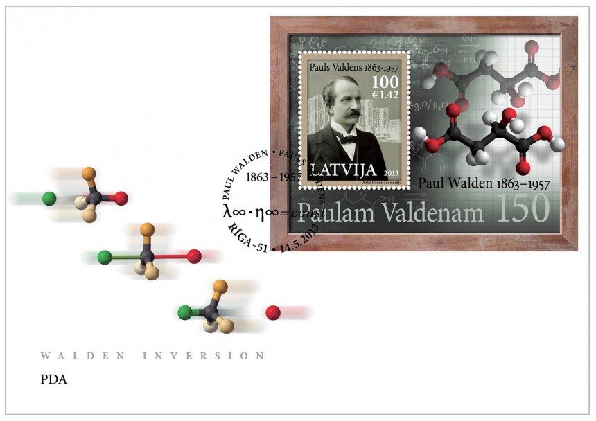 Par godu viena no pasaulē izcilākā latviešu izcelsmes zinātnieka Paula Valdena 150.dzimšanas dienai Latvijas Pasts izdevis pastmarku bloku un aploksni.