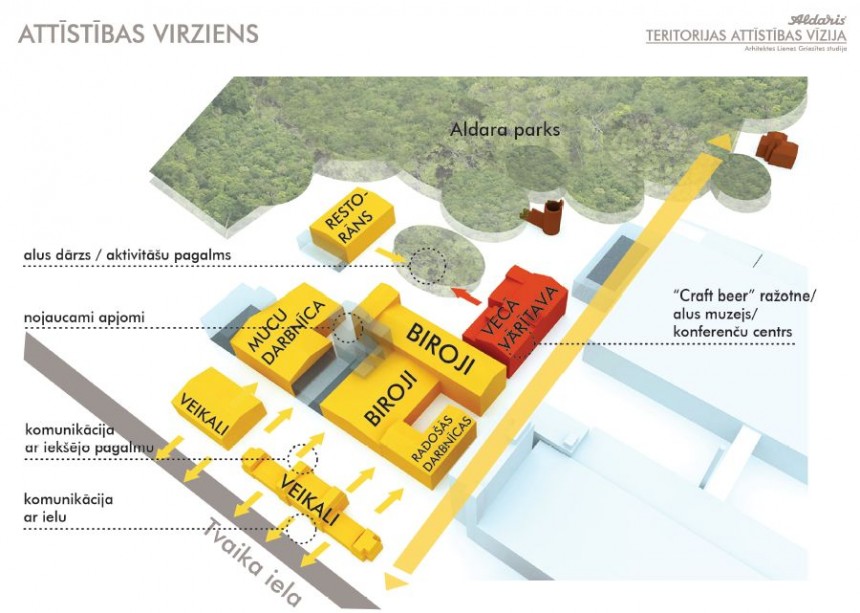 Alus darītava Aldaris tuvākajā laikā uzsāks rekonstrukcijas darbus, kuri sākotnēji paredz atjaunot vēsturisko alus darītavu un alus muzeju, bet pēc tam, piesaistot sadarbības partnerus, turpināt attīstīt daļu no Aldara teritorijas kā sabiedriski aktīvu kultūras centru, kurā ir arī restorāns, mazi boutique veikaliņi, amatnieku darbnīcas un reprezentācijas telpas.