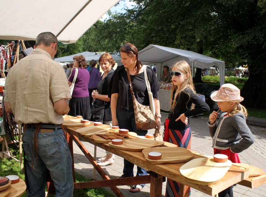 Vakardien atklātajā Vērmanes dārza amata meistaru gadatirgū no piedāvāto preču klāsta tiešām acis ņirb – audumi, rotas, metālkalumi, rotaļlietas...
