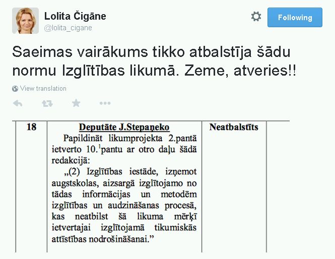 Saeimas vairākums tikko atbalstīja šādu normu Izglītības likumā. Zeme, atveries!! pic.twitter.com/gEaZJqwSyF