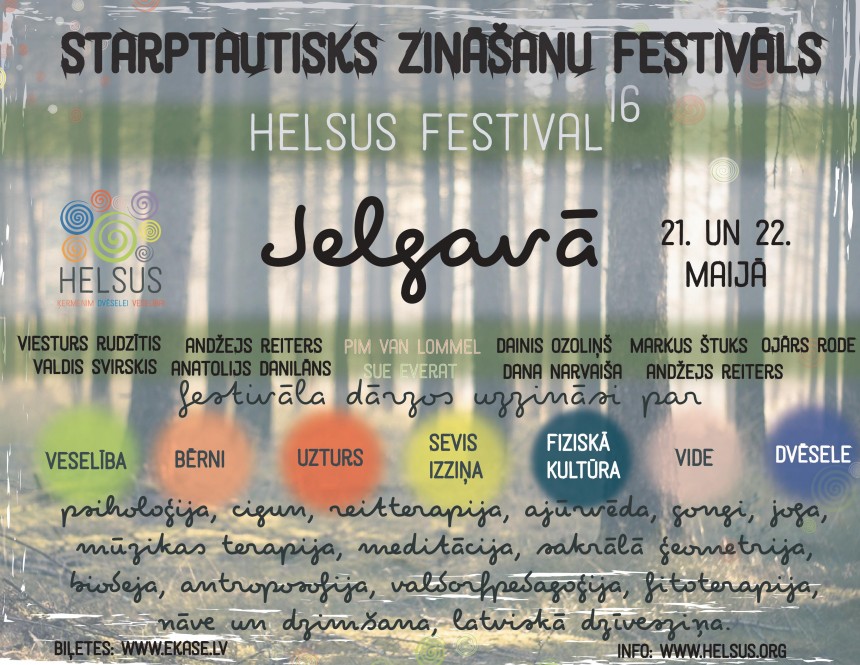 2016. gada 21. un 22. maijā Jelgavā ar pirmajiem ziediem savus zināšanu dārzus apmeklētājiem vērs divu dienustarptautiskaiszināšanu festivālsHELSUS 2016. Šogad festivāls mājvietu radis Jelgavas Pasta salā un Jelgavas pilī, kur vienlaikus norisināsies lekcijas, fiziskie treniņi, darbnīcas, koncerti u.c. zināšanu un veselību bagātinošas nodarbes. “Ķermenis, Dvēsele, Veselība” ir festivāla atslēgas vārdi, caur kuriem sevi izzināt ir aicināts ikviens. Šogad HELSUS piedāvā programmu, kas vienuviet pulcēs vairāk kā 240 meistarus - zinātniekus, lektorus un praktiķus, kuri ar zināšanām dalīsies 7 HELSUS dārzos: Veselības dārzs; Uztura dārzs; Vides dārzs; Dvēseles dārzs; Sevis izzināšanas dārzs; Fiziskās prakses dārzs; Dārzs bērniem.