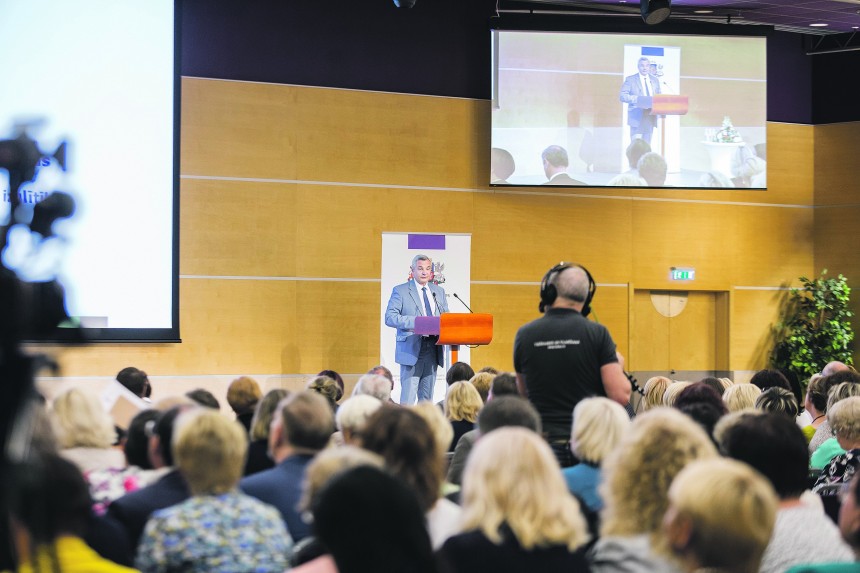 «Esmu pārliecināts, ka mācīties var būt interesanti un to darīt var ar prieku. Lai tā notiktu, ir vairāki priekšnosacījumi,» pirms konferences, kurā pulcējās apmēram 800 skolu direktoru un izglītības pārvalžu darbinieku, teica izglītības un zinātnes ministrs Kārlis Šadurskis. Viens no tiem esot jaunais saturs. Šajā jomā jau daudz ir izdarīts: ir izstrādātas pirmsskolas izglītības vadlīnijas, un tapis pamata un vispārējās vidējās izglītības standarts.