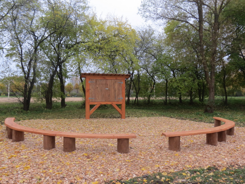 Par 2200 eiro SIA "Taku meistars" izveidojis āra klasi pie Skrundas vidusskolas, informē Skrundas novada pašvaldības projektu koordinatore Viktorija Reine.