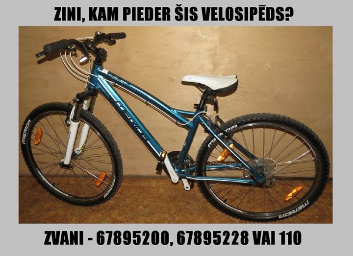Tas atrasts Stopiņu novadā, Dreiliņu apkārtnē. Policija aicina aplūkot attēlā redzamo velosipēdu un gadījumā, ja kāds zina šī velosipēda īpašnieku, zvanīt uz tālruņa numuriem: 67895200, 67895228, 110 vai vērsties Salaspils iecirknī.