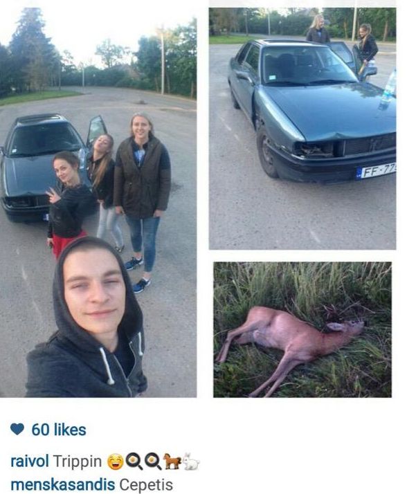Kāda šokēta twitter lietotāja dalījusies ar ne mazāk šokējošu attēlu – bariņš latviešu jauniešu, šķietami nonāvējuši graciozu meža iemītnieci un publicējuši attēlus ar dzīvnieka ķermeni.