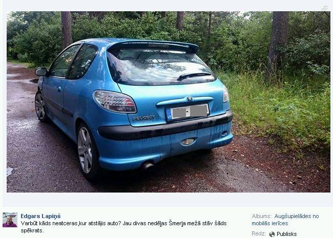 Kāds facebook lietotājs ievietojis attēlu, kurā redzams zila Peugeot markas automašīna un papildinājis to ar ierakstu, kurā norāda – šī mašīna atrašanās vietu neesot mainījusi jau teju 14 dienu.