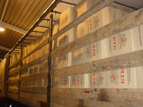 Ir uzsākts kriminālprocess par kontrabandas mēģinājumu lielā apmērā, bet kravas mašīnas, kurā veda kontrabandas cigaretes, šoferim piemērots apcietinājums.