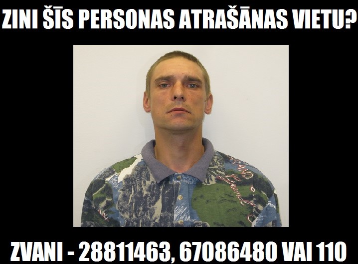 Policija lūdz apskatīt fotogrāfiju un atsaukties ikvienu, kas zina šī vīrieša pašreizējo atrašanās vietu, zvanot uz tālruņa numuriem: 28811463, 67086480 vai 110, vai vēršoties tuvākajā policijas iecirknī.