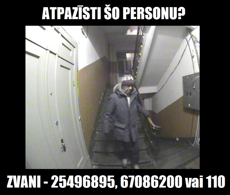Valsts policija aicina aplūkot attēlā redzamo personu un atpazīšanas gadījumā zvanīt policijai pa tālruni 25496895, 67086200 vai 110.