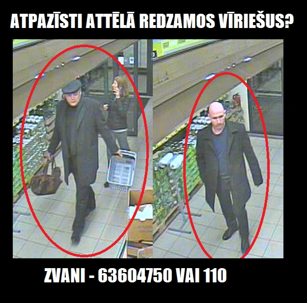 Valsts policijas Ventspils iecirknis meklē attēlos redzamos vīriešus. Personas tiek turētas aizdomās par zādzību izdarīšanu kādā no tirdzniecības objektiem Ventspilī.