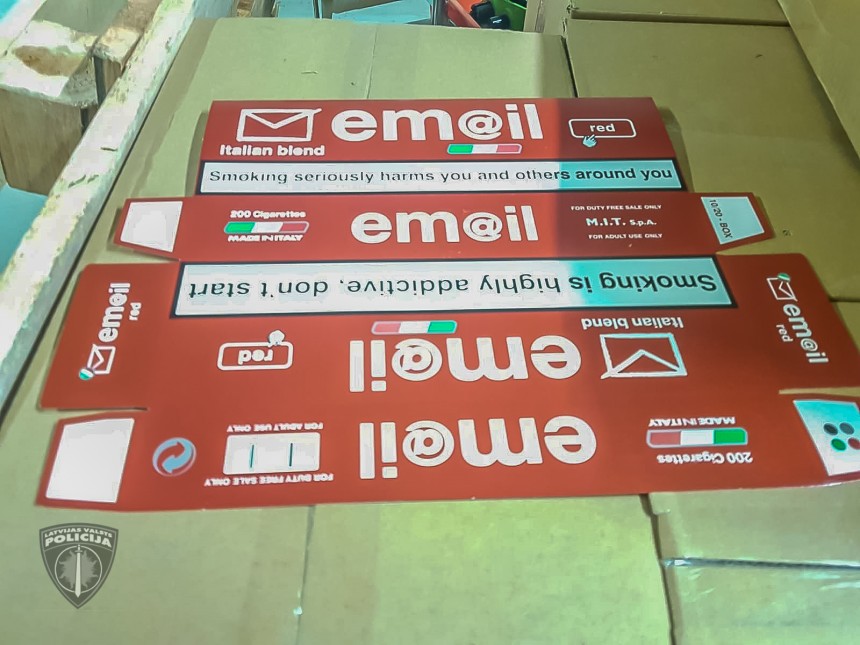 Notikuma vietā likumsargi izņēma 13,6 miljonus nelegālo cigarešu un deviņas tonnas tabakas.