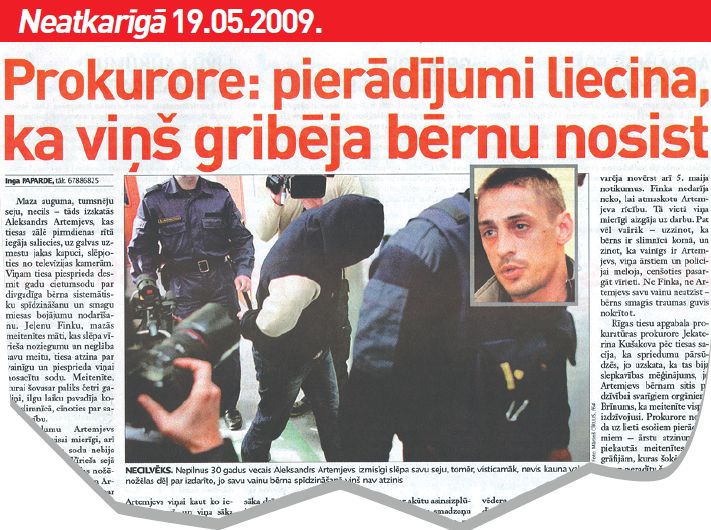 2008. gada 3. maijā, kad Artemjevs kārtējo reizi mājās bija viens pats ar bērnu, viņš tīši iesita mazajai ar dūri pa galvu, nodarot smagus, dzīvībai bīstamus bojājumus – galvas sasitumu ar akūtu asinsizplūdumu zem galvas smadzeņu cietā apvalka. Meitenīte ne tajā, ne nākamajā dienā neēda, viņai bija slikta dūša, kustību traucējumi, taču medicīniskā palīdzība bērnam netika sniegta. Pēc divām dienām, kad meitenītes māte aizgāja uz darbu, vīrietis atkal sita bērnu. Meitenīte zaudēja samaņu, viņai no mutes tecēja asinis. Artemjevs, saprotot, ka bērns var nomirt, izsauca ātro medicīnisko palīdzību. Slimnīcā meitenītei tika konstatēts dzīvībai bīstams vēdera sasitums, kā arī divas dienas iepriekš iegūts galvas sasitums un smadzeņu koma. "Lemjot par bērna aprūpes tiesībām, mūs šokēja tas, cik ciniski pieaugušie cilvēki var melot – ka bērns ieguvis šādas traumas, nokrītot un atsitoties pret TV pulti vai saskrienoties ar suni," tagad Neatkarīgajai saka Rīgas bāriņtiesas priekšsēdētājs Aivars Krasnogolovs. Pašlaik gan J. Finka, gan arī mazā meitenīte vairs nav Rīgas dienestu uzraudzības lokā, jo meitenīte dzīvo pie tēva, kuram viņa dzīvesvietas bāriņtiesa piešķīrusi pilnas aprūpes tiesības, arī J. Finka mainījusi savu dzīvesvietu. Zinot to, kas noticis ar bērnu, un faktu, ka bērna māte slēpa sava bērna spīdzināšanu, bāriņtiesa savulaik atņēma viņai aprūpes tiesības pār bērnu, taču, kā izrādās, viņa divas reizes bāriņtiesas lēmumu pārsūdzējusi. Abas reizes viņa zaudējusi, Neatkarīgajai saka A. Krasnogolovs.