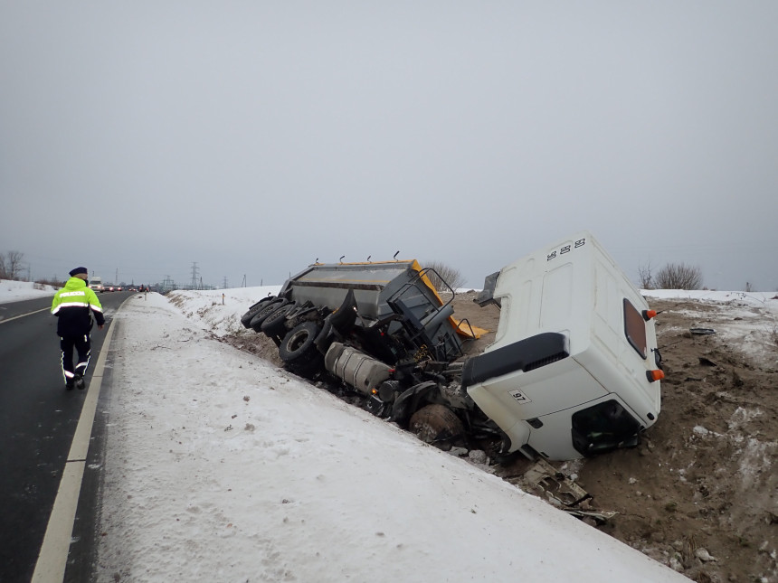 Negadījumā iesaistīti transportlīdzekļi "Volkswagen Passat Variant" un "Renault Premium" savienojumā ar piekabi "Schwarzmuller". Pēc sadursmes abi transportlīdzekļi nobrauca no ceļa braucamās daļas grāvī.