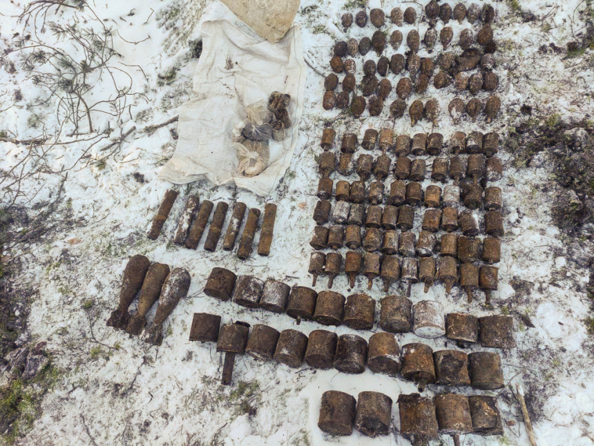 Kopumā tika konstatētas 147 rokas granātas, 11 lādiņi un 5 kg trotila.