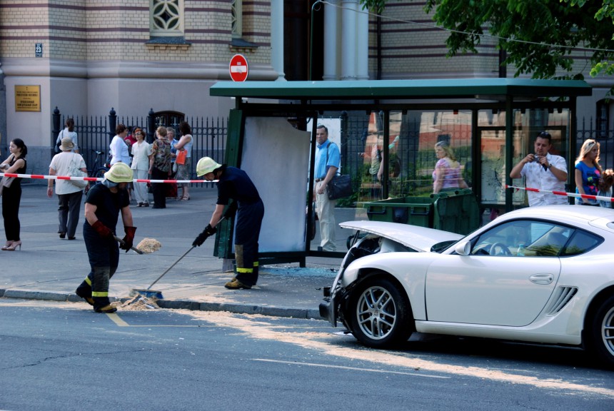 31. maijā Rīgā, Brīvības ielā sabiedriskā transporta pieturas nojumei uzbrauca sieviete, kura vadīja automašīnu "Porsche Cayman". Īsi pēc negadījuma Valsts policijas pārstāvji izvirzīja sākotnējās versijas, ka sieviete izraisījusi avāriju nejaušības dēļ – viņa nav spējusi kontrolēt automašīnu un pārāk ātri mēģinājusi izdarīt pagriezienu krustojumā.