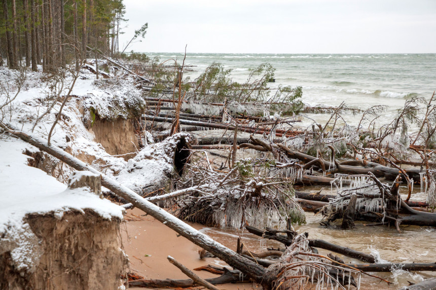 Šoziem jau novērota pastiprināta krasta erozija, to veicina ne tikai augstais jūras līmenis, bet arī siltais un pārmitrais laiks un ledus trūkums.