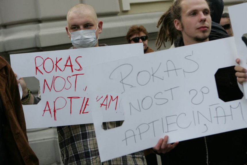 Šorīt pie Saeimas nama bija pulcējiešies vairāki desmiti piketētāji, kuri ar dažādiem lozungiem un plakātiem protestēja pret farmācijas likuma normu, kura paredz, ka no nākamā gada aptiekas varēs piederēt tikai farmaceitiem.