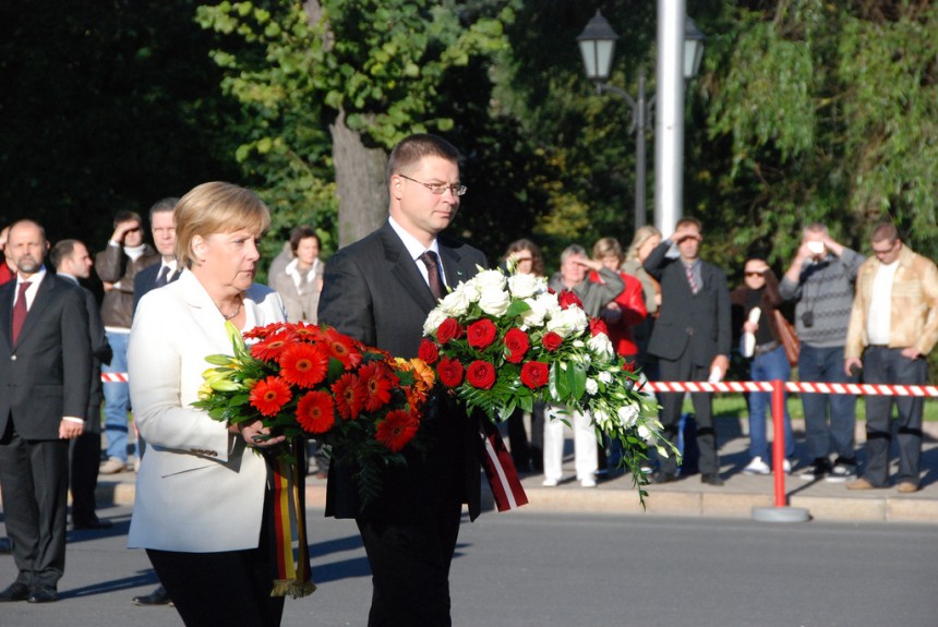 Rīta pusē Ministru prezidents Valdis Dombrovskis un Merkele nolika ziedus pie Brīvības pieminekļa, savukārt plkst.11.45 plānota Dombrovska un Merkeles preses konference.