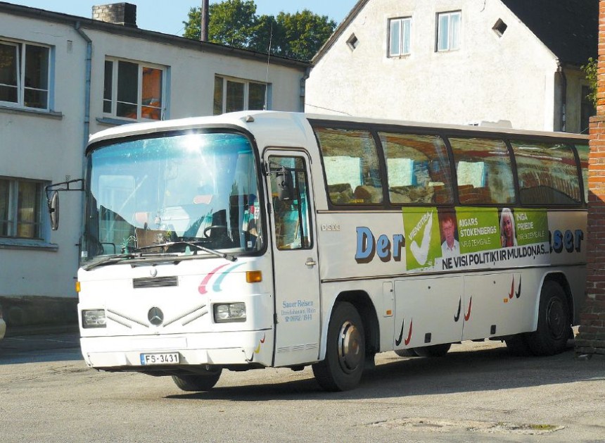 Kandavas Kārļa Mīlenbaha vidusskolas skolēniem, kas ceļu no mājām uz skolu un atpakaļ mēro ar skolas autobusu, pirmdien nācās kāpt transporta līdzeklī, uz kura bija uzlīmētas politisko partiju apvienības Vienotība priekšvēlēšanu reklāmas.