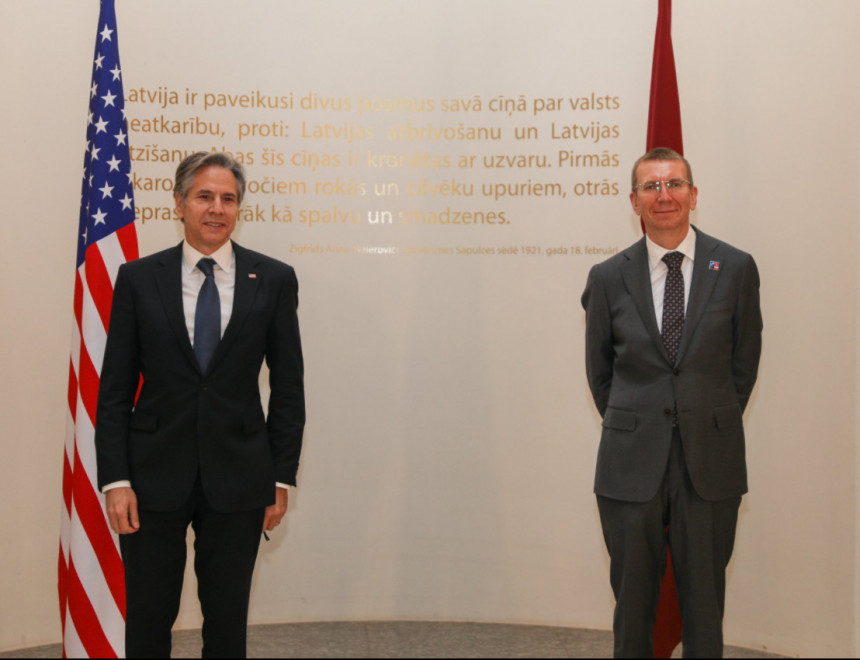 "Tikšanās laikā ar Latvijas Valsts prezidentu un ārlietu ministru mēs paudām savu apņēmību stiprināt Baltijas drošību. Turklāt mēs uzsvērām, ka 5.pants, kas nosaka, ka uzbrukums vienai alianses valstij, ir uzbrukums visām, ir kā akmenī cirsts. Tad, kad mūsu sabiedrotie ir stiprāki un drošāki, tad arī mēs tādi esam," sacīja Blinkens.