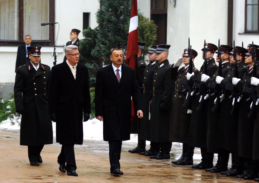 Aizkaukāza valsts vadītājs pirmdien tikās arī ar Saeimas priekšsēdētāju Solvitu Āboltiņu (Vienotība). Viņa uzsvēra, ka Latvija kā Eiropas Savienības dalībvalsts vienmēr aktīvi atbalstījusi ES Austrumu partnerības iniciatīvu, kuras ietvaros tiek veidotas ciešākas partnerattiecības ar Azerbaidžānu un vēl piecām bijušās Padomju Savienības valstīm. Saeimas priekšsēdētāja pauda cerību, ka pretēji globālai ekonomiskai krīzei ekonomisko sadarbību un arī cilvēcisko kontaktu veicināšanu būtiski atvieglo arī tiešā aviosatiksme starp abu valstu galvaspilsētām.