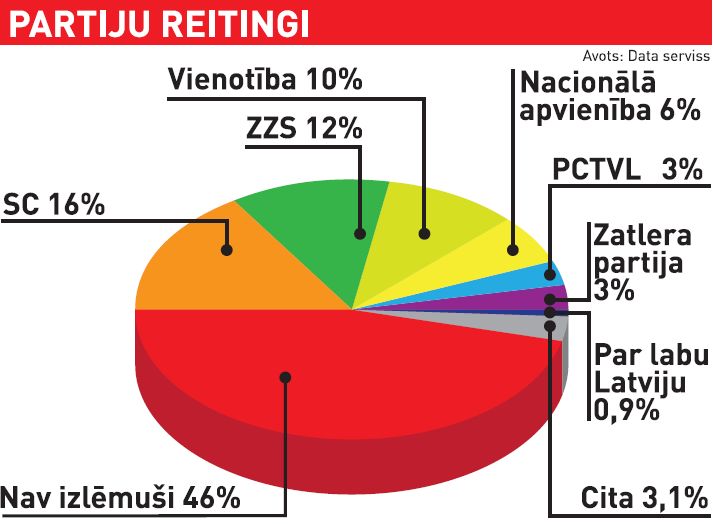 Jaunākie partiju reitingi liecina, ka līdera pozīcijas nemainīgi saglabā Saskaņas centrs (SC), taču aiz tā seko Zaļo un zemnieku savienība (ZZS), kas ilgstoši ir bijusi tikai aiz tagadējās trešās vietas ieguvējas Vienotības.