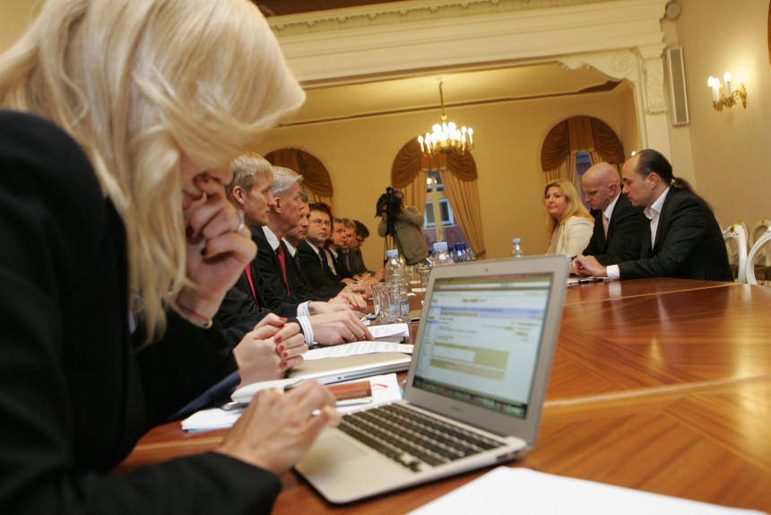 Pirmdien pulksten 16.30 divpusējas sarunas uzsāka Vienotība un ZRP. Pēc aptuveni stundu garām sarunām sapulcei tika pieaicināti Nacionālās apvienības pārstāvji. Pavadījuši sarunās vēl aptuveni stundu, Nacionālās apvienības politiķi īsi pirms pulksten 20 aizsteidzās uz savu valdes sēdi. Ap 21.30 visas trīs partijas savās sarunās panāca vienošanos par koalīcijas veidošanu.