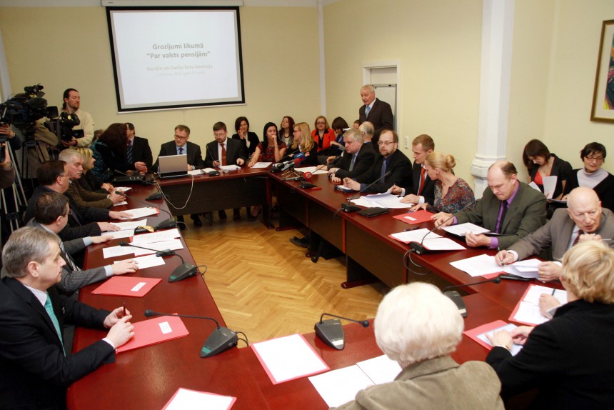 Par pensiju likuma grozījumu virzīšanu pirmajā lasījumā bija seši komisijas depautāti - Arvils Ašeradens (Vienotība), Andris Buiķis (Vienotība), Gunārs Igaunis un Inita Bišofa (abi no Zatlera Reformu partijas), Ilmārs Latkovskis (Visu Latvijai/TB/LNNK) un neatkarīgā deputāte Elīna Siliņa. Balsojumā pret bija visi trīs komisijā pārstāvētie Saskaņas centra deputāti - Andrejs Klementjevs, Igors Zujevs un Vitālijs Orlovs, savukārt atturējās abi ZZS deputāti - Aija Barča un Andris Bērziņš