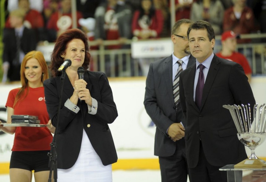 Vīlusies par skaļo izsvilpšanu uz hokeja laukuma, parlamenta priekšsēdētāja Solvita Āboltiņa savā twitter kontā ar rūgtumu atzin: "Šī bija pēdējā reize, kad skatījos hokeju. Hokeja fani ir huligāni!"