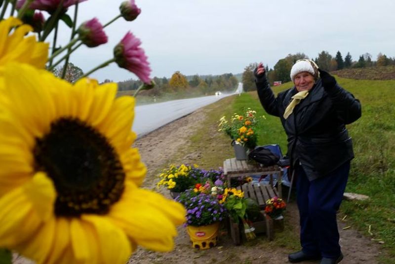 Šoreiz iespēja palīdzēt sirmajai kundzei noteikti ir tiem, kuri brauc pa ceļa posmu Melturi-Cēsis. Šajā ceļa posmā ceļmalā kundze pārdot rūpīgi sataisītus rudens ziedu pušķus. Neatkarīgi no laikapstākļiem, dāma katru dienu ceļmalā sagaida garāmbraucējus, kuri gatavi iegādāties viņas sarūpētos krāšņos ziedus.